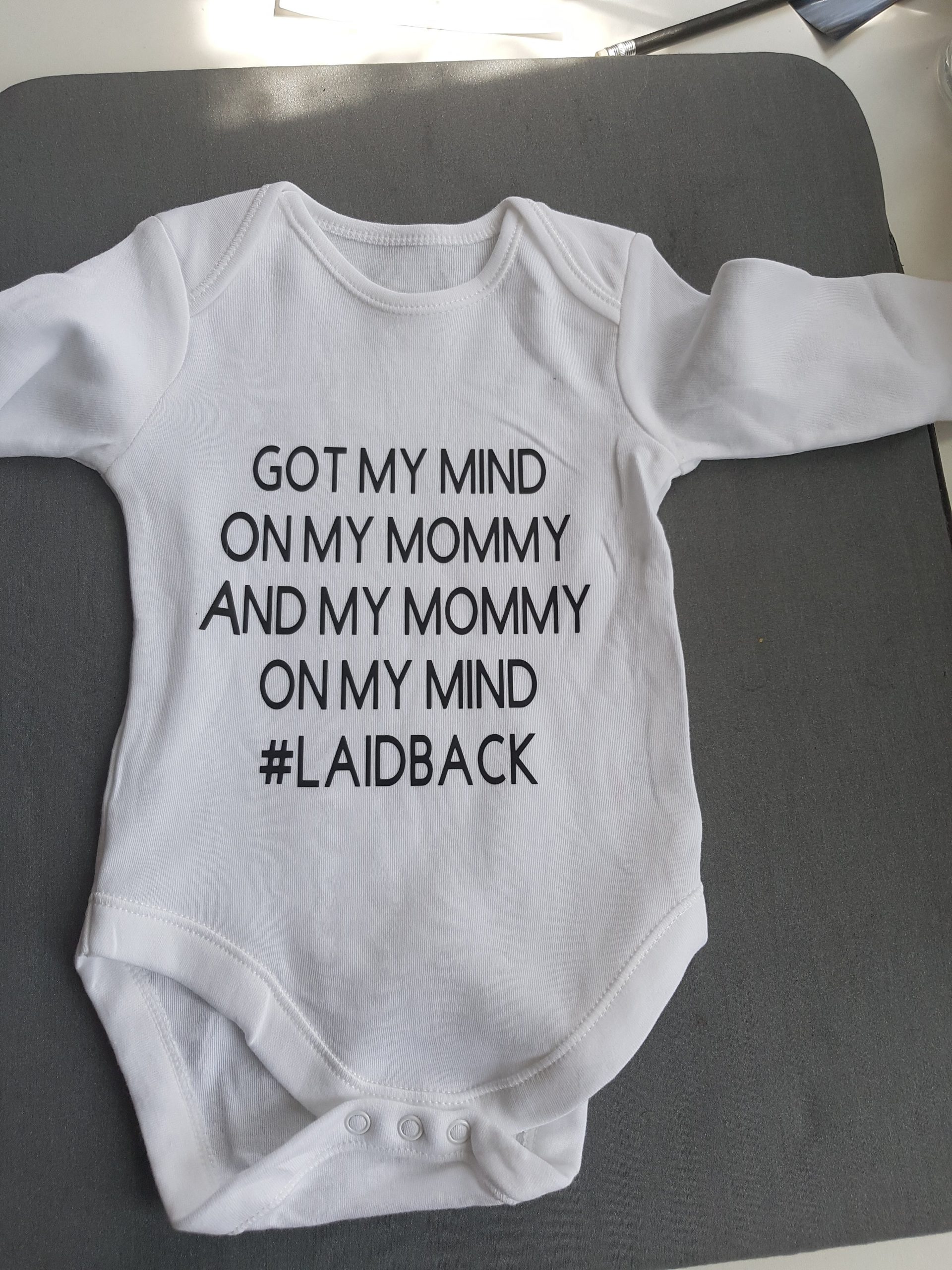 White babygro with Black, Pink or Blue text